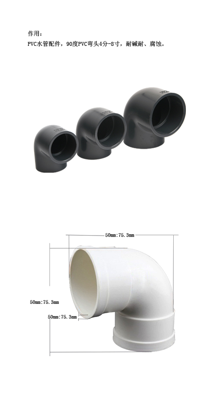 PVC水管配件,90度PVC彎頭4分-8寸,耐堿耐、腐蝕。